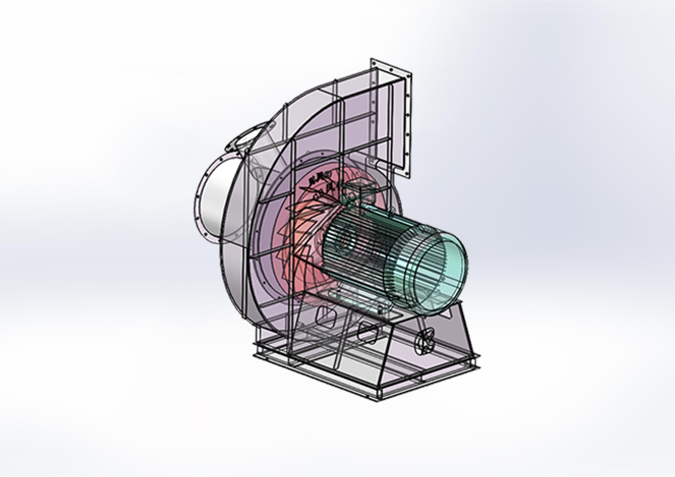 風機結構簡單,空間小,成本低,機械效率高。一般用在小風量送風助燃和小型工業風機。利用流體力學分析有限元進行氣動設計,大大減少了模型機的制作,縮短了產品設計周期、效率得以提高。